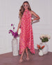 The Celia Abstract Halter Maxi Dress was made for grand entrances and endless compliments. Designed in pleated crepe satin fabric that flows beautifully, it features a halterneck tie closure for a sleek, sophisticated touch. The cut-out detail at the neckline adds a hint of drama, while the asymmetric hem creates graceful movement with every step.