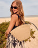 From market strolls in the morning to golden hour beach hangs, the Coastal Carryall Straw Tote Bag brings laid-back luxe wherever you go. Designed in a textured cotton straw-like textile, it features an open top for easy access and adjustable faux leather shoulder straps, each finished with playful wooden ball pulls, because details matter. Toss in your sunnies, SPF, and a good read, it holds it all without missing a beat.