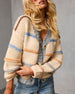 Imagine the coziest hug, now give it a bold, style-forward twist. The Esmarie Contrast Stripe Cardigan is your new statement layer, turning heads with its heavyweight open knit crochet texture and eye-catching contrast stitch design. Ribbed trims add a polished finish, making this the kind of piece that feels both lived-in and luxe. It's got that throw-it-on-and-go energy while still serving major modern classic vibes.