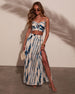 Cool, breezy, and full of sunshine The Haidee Watercolor Striped Front Tie Top is your summertime style essential. Made from a luxurious crepe fabric with a soft sheen, this top flows with ease while the smocked waistband with ruffle trim adds the perfect feminine touch. The front tie detail brings a playful twist, making it easy to dress up or down. Pair it with the matching Haidee Watercolor Striped Maxi Skirt for a stunning set that is oh so unforgettable.