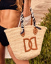 Meet your new Riviera go-to: the Hollen Scarf Wrapped Straw Tote Bag. Imagine breezy beach days and city strolls wrapped in chic, sun-soaked style. This woven straw beauty features an eye-catching faux leather ‘DD’ overlay and an open top for easy access to all your essentials. Inside, a neat slip pocket keeps things organized, while dual faux leather straps ensure comfortable carrying. The detachable satin scarf wrap adds a touch of effortless elegance, perfect for elevating any summer look.