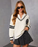 The Jiles Embroidered Crest Partial Zip Sweater brings polished meets playful with its ribbed knit jersey fabric, contrast trim details, and a sporty-chic zip neckline that lets you style it your way. The collared design gives it a nod to classic varsity vibes, while the embroidered crest at the chest adds a hint of vintage charm.