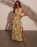 The Sunny Romance Halter Maxi Dress is a getaway-ready stunner made for sun-kissed adventures. With its tropical vacation print and flowy pleated broadcloth fabric, this maxi brings effortless glamour to every step. The halter neckline ties at the back for a custom fit, while the acrylic ring detail and waist cut-out serve just the right amount of sass. A smocked back panel adds comfort and shape, making this dress perfect for dancing under the palms or sipping cocktails by the sea.